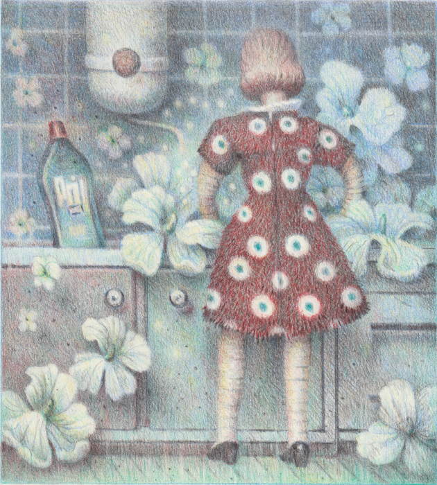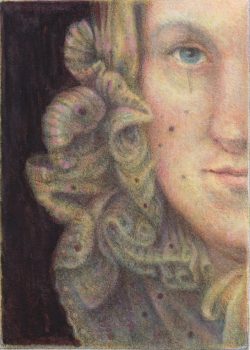 Freckles, Acryl und Farbstift auf Papier, 11,5 cm x 8,2 cm, 2023